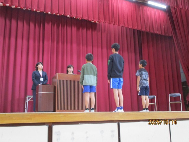 今日から2学期が始まりました。体育館で全校そろっての始業式。話を聞く姿勢や礼の仕方がとても上手でした。大きな声で返事をして賞状を受け取る姿も見られました。