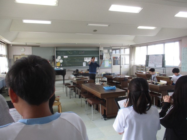 今日は、2組の音楽の授業があり、先生方の前でずっと練習をしていた曲を合奏しました♪