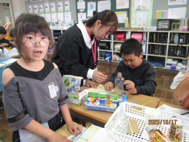 3年生では「豆電球に明かりをつけよう」という学習をしています。難しい説明書に苦労しながらも協力し合って、実験道具を作り、どんなものが電気を通すのか意欲的に調べています。最後の1枚は、お月様が見られない日が続くので 桜が丘小で見られたかわいいお月さまたちでした。