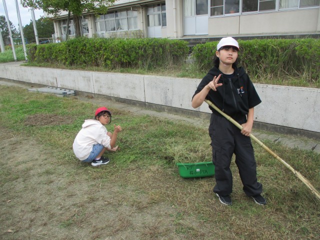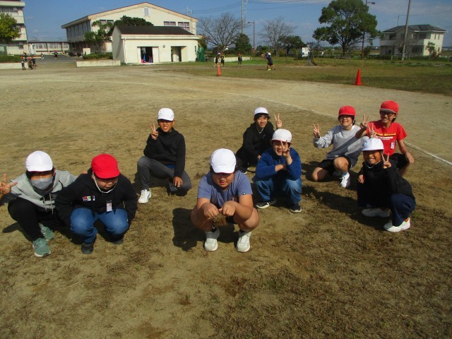 運動会前日・・・休み時間、6年生が自主的に草取りをグラウンドの草取りをしました。最高学年として、明日の運動会に向けて、貢献しようとする気持ちがすばらしいですね。小学校生活最後の運動会・・・思い出に残る、最高の運動会にしましょう!