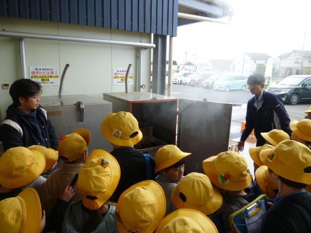 お芋の貯蔵庫やふかしている機械、皮むきなど工場の様子を見せてもらいました。