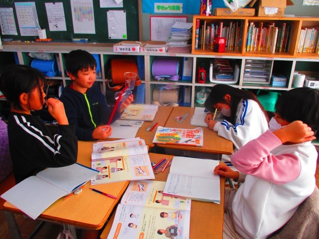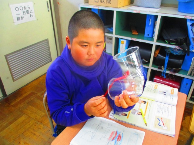 今日の理科では、手作り模型を使って、筋肉のしくみについて学習しました。