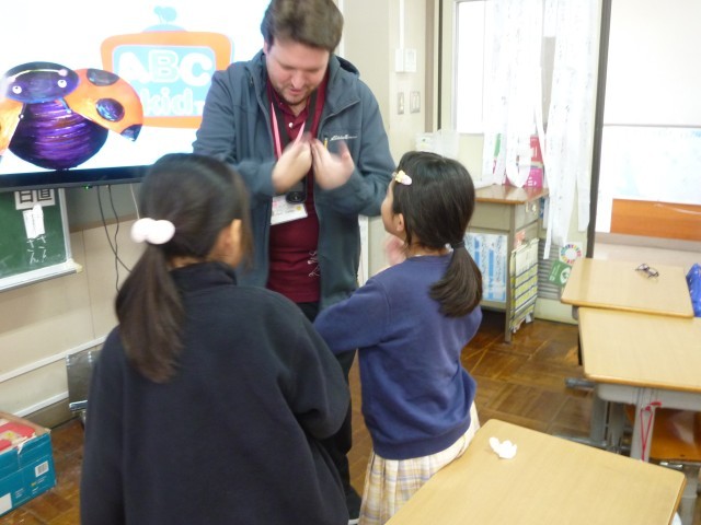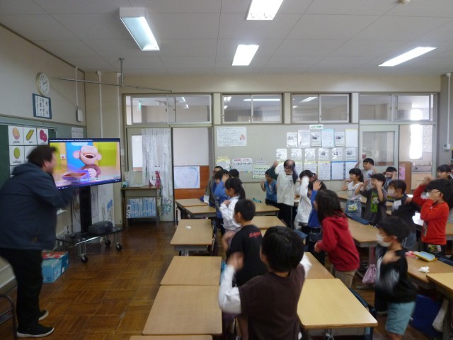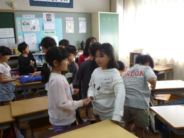 今日は、果物や野菜の英語表現を学習すると、先生や友達に、何が好き?と英語で質問をしてまわりました。