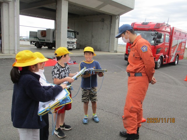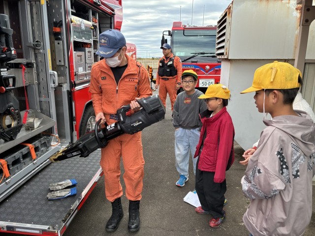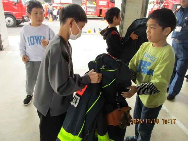 今日は、社会科見学で、消防署に行きました。消防士の人たちはどんな仕事をしていて、どんな風な工夫があるのか、たくさん知ることができました。消防士さんたちも皆優しく教えてくれました。実際に防火衣を着させてもらったり、道具に触らせてもらったりして、楽しく学ぶことができました。