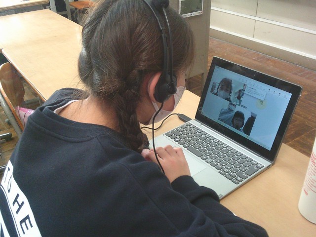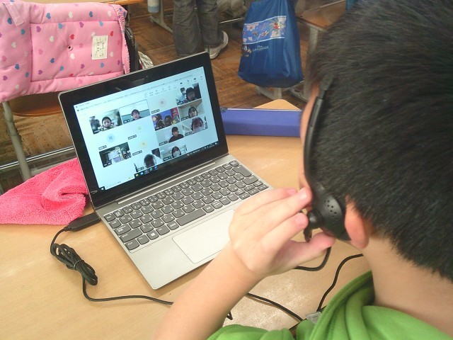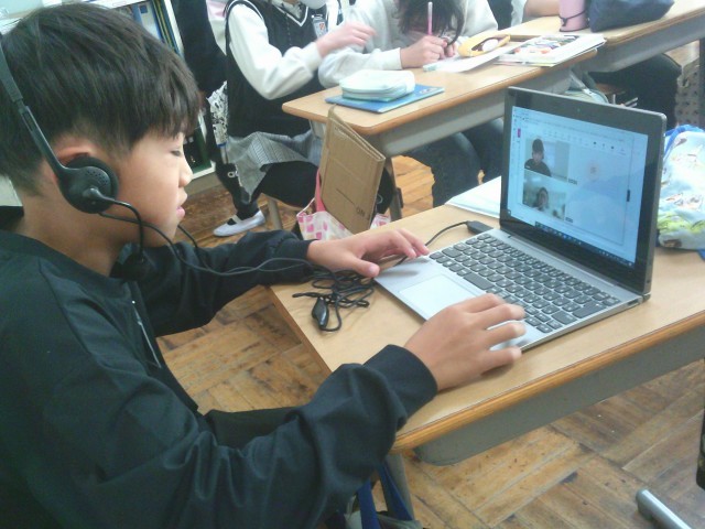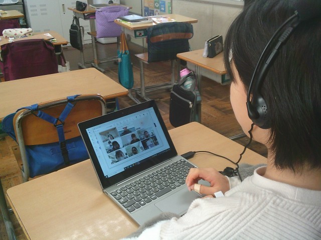 宿泊学習の実行委員が六郷小学校の五年生とオンライン交流をしました。
