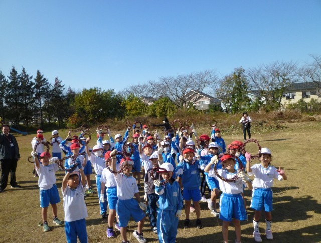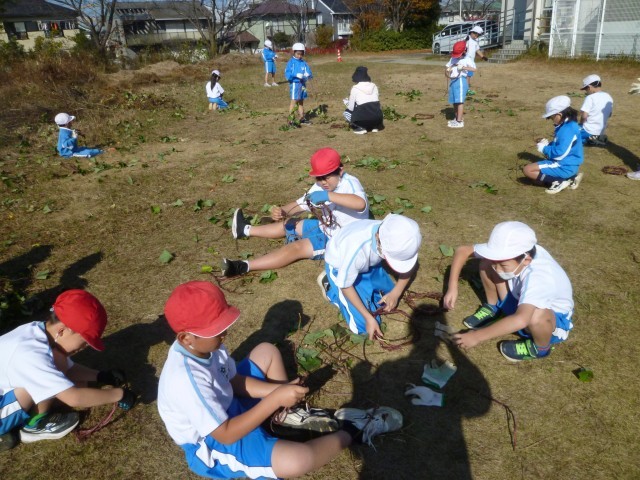 いもほりの後は、おいものツルを使ってリースの形をつくりました。