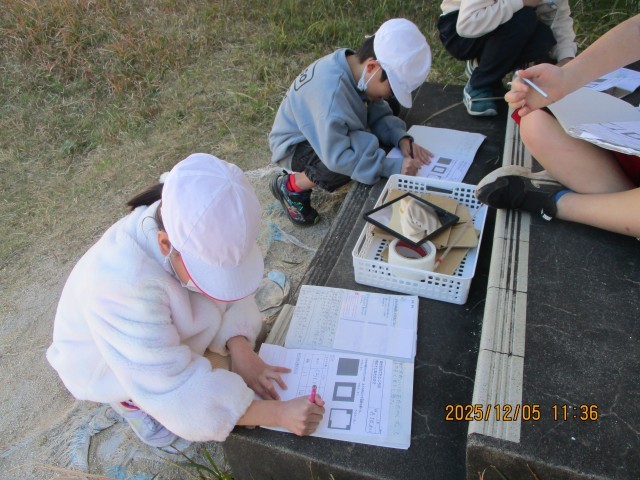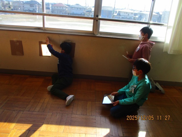 今日は実験日和。鏡ではね返した日光を集めた時の明るさや温かさを調べました。いろいろな場所で、鏡の枚数を変えながら実験をしました。どんな結果になったかは来週の授業で!