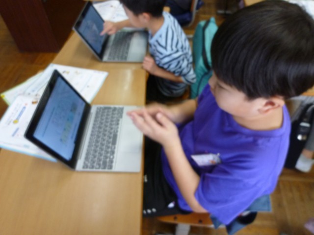 再生されるリズムを確認したり、一緒に叩いてみたりとお気に入りのお祭りのリズムを見つけていました。