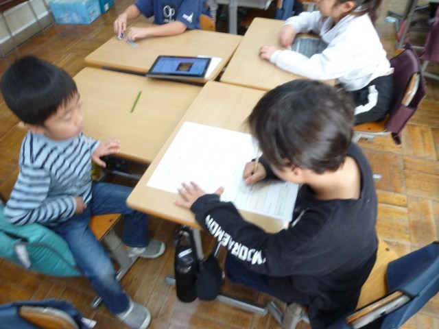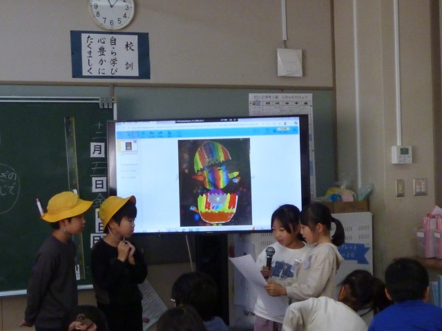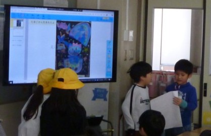 新種のたまごを発見!と研究員とアナウンサーになりきって、作品のよさを考えました。