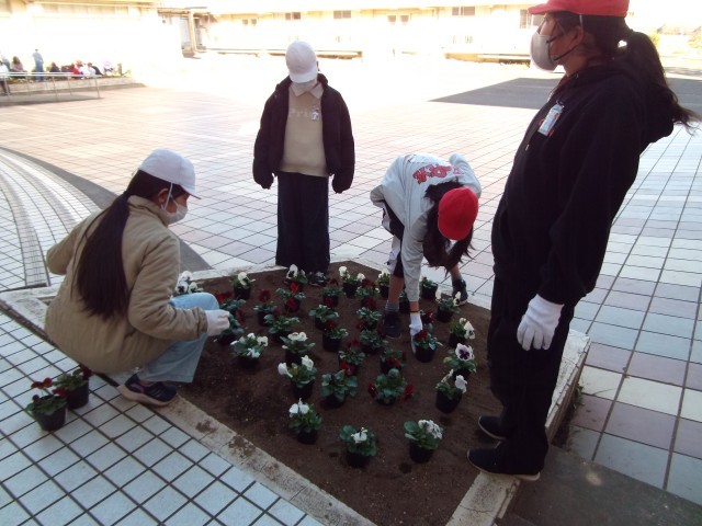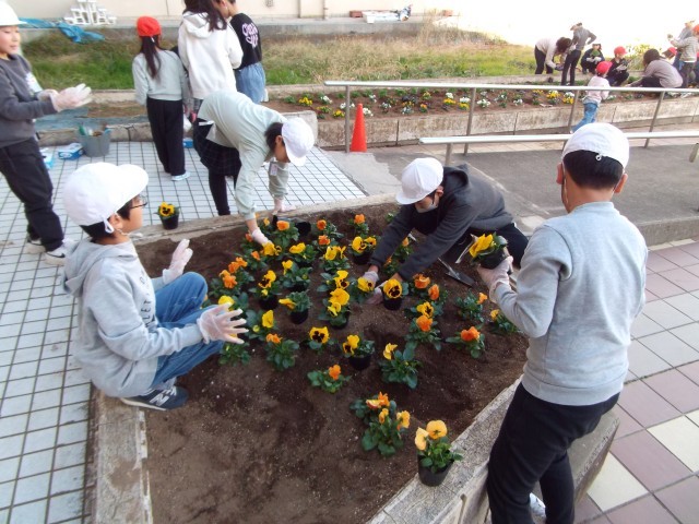 桜が丘小☆絶好調~みんなの花壇を みんなの手で(お昼休み編)~ 公開日 2025/12/10 更新日 2025/12/10 お知らせ 業間休みに植えきれなかったので、お昼休みも集まってくれました。やり方が分からない子に教えてくれたり、慣れて手際よくどんどん植えてくれたり。みんなで作った花壇、みんなで大切に育てていけるといいなと思います。ちなみに、昇降口の両サイドは環境委員さんのアイディアで、あるものの形を表しています。