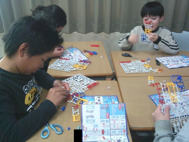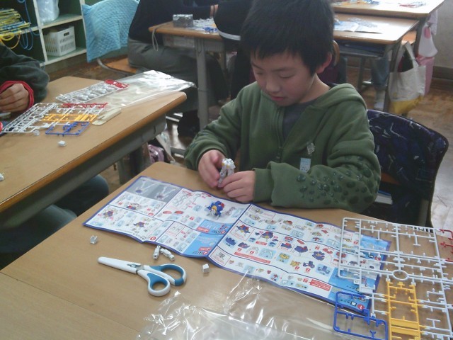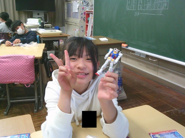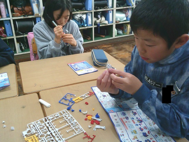 社会の時間に「工業」の学習のまとめとして、プラモデル作りをしました。