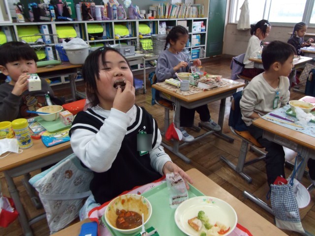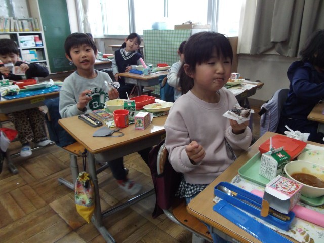 桜が丘小☆絶好調~クリスマス献立 おいしい顔 2~ 公開日 2025/12/24 更新日 2025/12/24 お知らせ おとなりのクラスも、ちょうどデザートタイムでした。みんなにこにこで、ケーキをほおばっていました。 +2