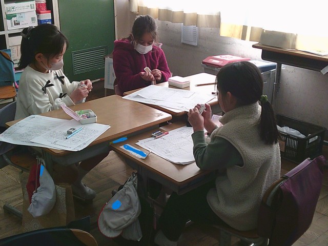 ひきざんのまとめの学習として、10個のコーナーがある「わくわく算数」に取り組みました。バディを組んで、計算カードを使って問題を出し合ったり、計算問題や文章問題を解いた後に、お互いにプリントを交換して丸付けをしたりしました。タブレットを使って、様々な問題に挑戦することもでき、みんなで「ひきざん名人」をめざしました。集中して取り組む姿がとても素敵でした!