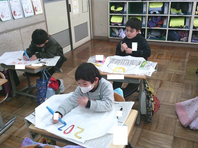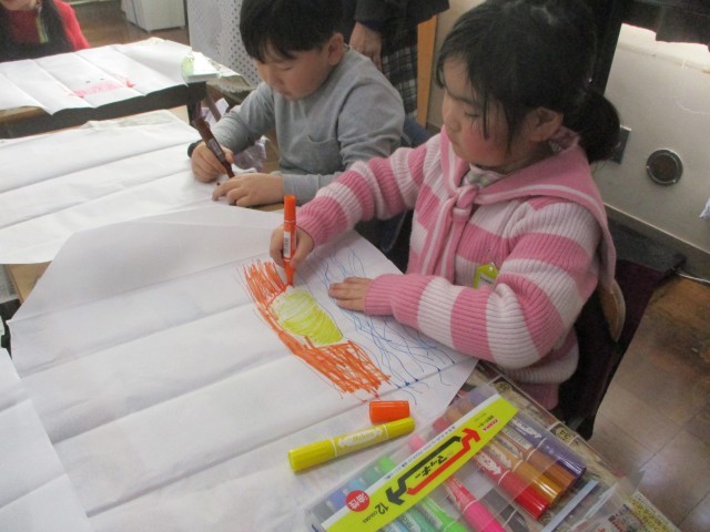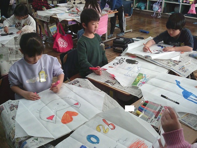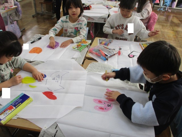 大きく好きな模様や生き物を描き、楽しみながら作ることができました。
