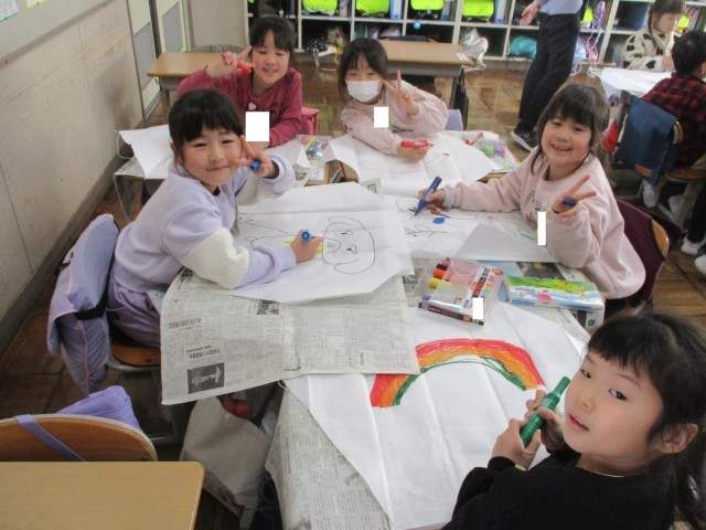 今日の図工では、凧あげをするための凧を作りました。