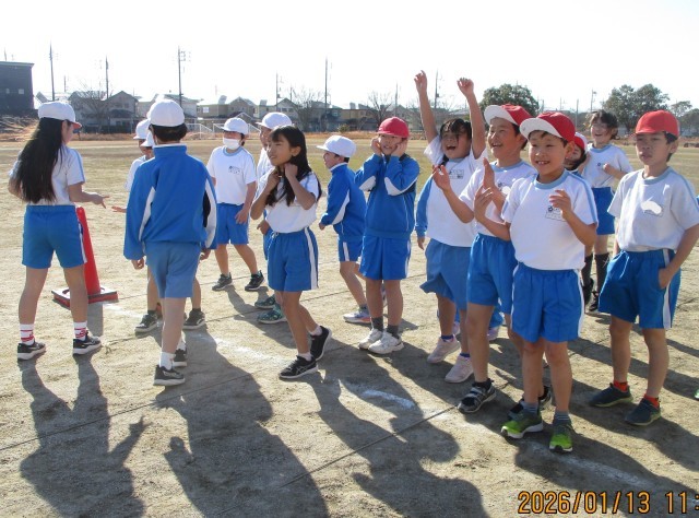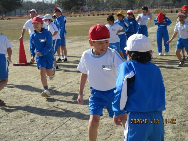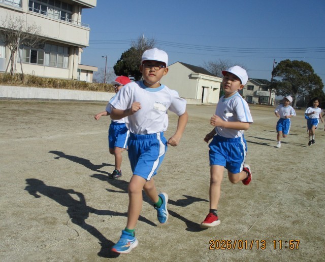 冬休み明け、初めての体育の授業でした。風の中をへびじゃんけんで体をしっかりあたためた後、4分間走をしました。強風にもかかわらず、自己記録を更新するお友達も・・・。冬休みやこの3連休、マラソンの練習に一生懸命に取りくんでいたという話もたくさん聞きました。あと1、2回記録の計測をします。自己記録更新を目指して頑張ってほしいものです。
