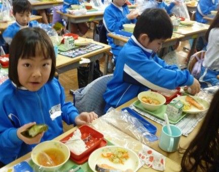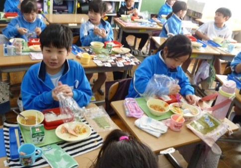 「自分で作ったおにぎりおいしい!!」と食べていました。