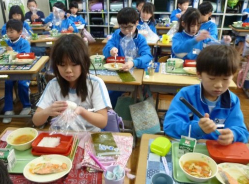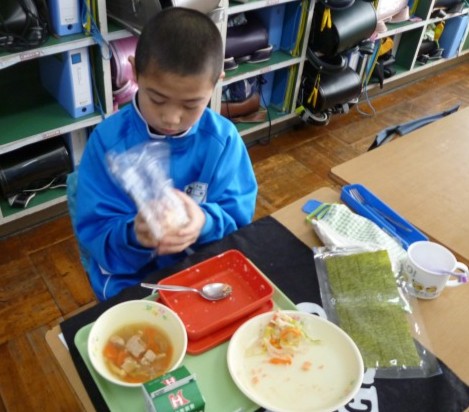 今日の給食はおにぎり!!