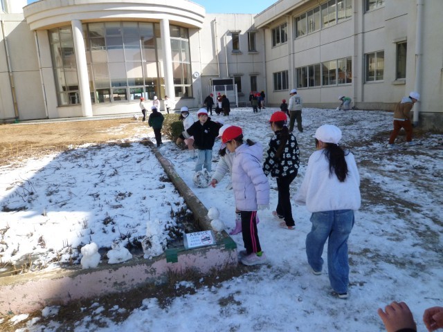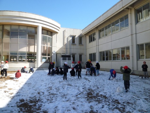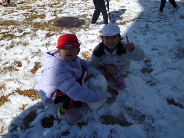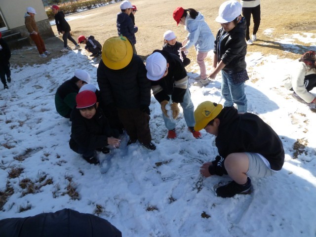 学校の雪は大分解けてしまっていたので、日陰に残っていた雪で遊びました。