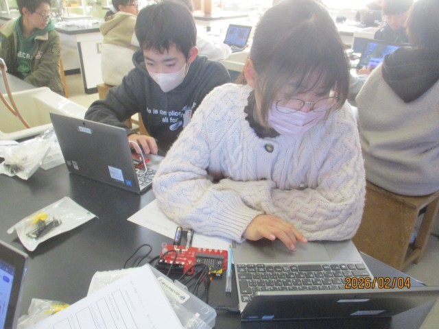 6年生の理科では、プログラミングを学習しました。特別講師の先生に来たいただいて、授業をしていただきました。