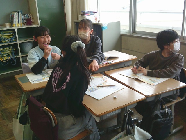 保健の学習では、グループごとに「事故の原因」を話し合いました。