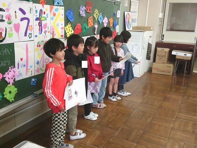 やってきた幼稚園バスに子どもたちは大喜び!小学校の魅力を発表や小学生体験でたくさん伝えることができました。