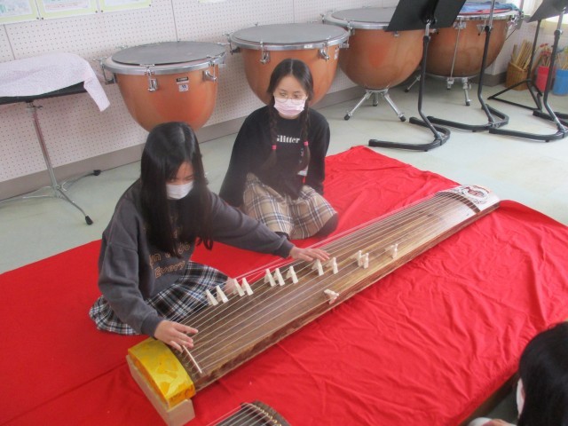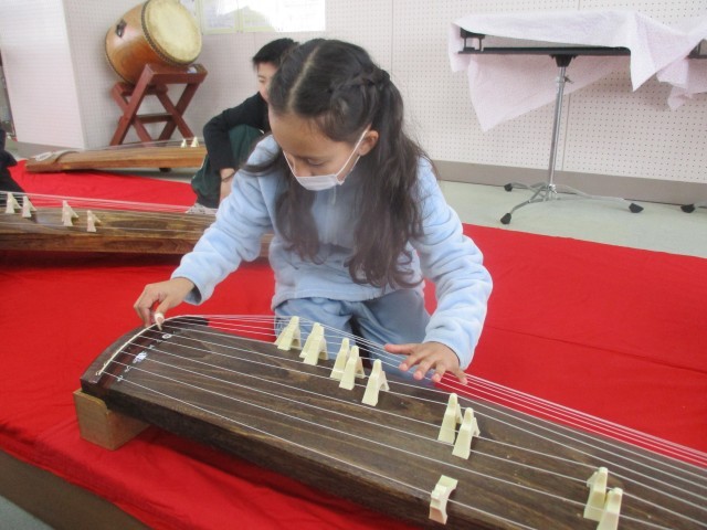 今日の音楽では、初めてお琴の演奏にチャレンジしました!先生にアドバイスをもらいながら、一生懸命「さくら」を演奏していました。体験後には、「楽しかった!」「またやってみたい!」と、終始笑顔が溢れていました。