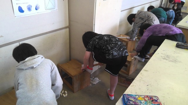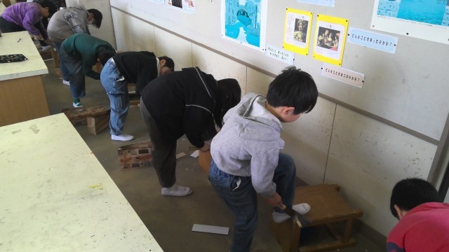 今日は図工の時間にのこぎりをつかって作品作りを進めました。始めはとにかくのこぎりで木を切り続ける時間です。初めてののこぎりに戸惑いながらも、だんだんと上手になっていく姿が見られました。