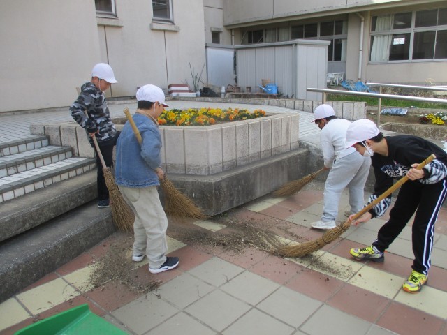 今日の5時間目は、卒業式の準備をしました。会場のお花を運んだり、昇降口やピロティー、廊下を掃除したりと、6年生のために頑張りました。4年生のみんな、ありがとう!