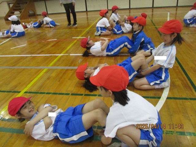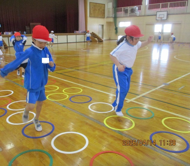今週から、早速体育が始まりました。二年生になり、子どもたちのやる気も十分!楽しみながらサーキットトレーニングを行いました。