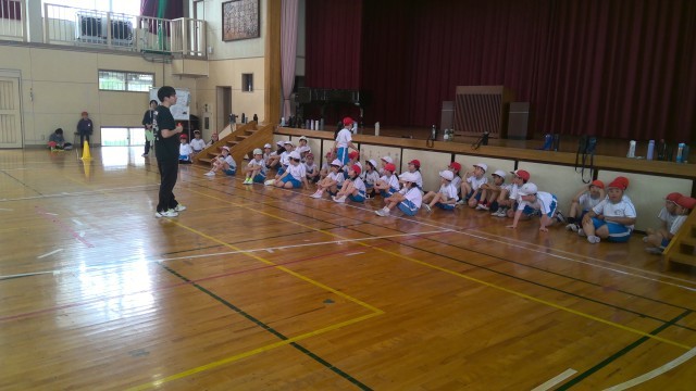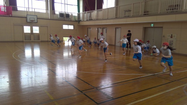 今日は2回目の学年体育でした。今年は体育の先生として、渡辺先生が来て教えてくれます。