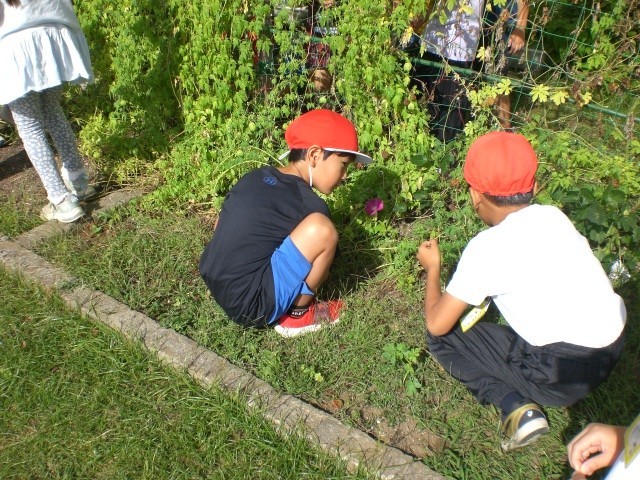 職員室前のホウセンカが種をつけました。今日は1年生が種とりをしてくれました。両手いっぱいに種がとれ、みんな大喜びでした。