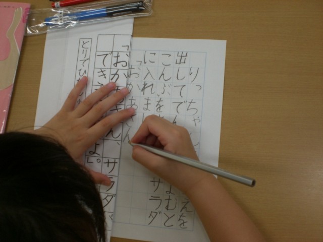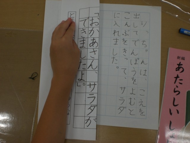 1年生は、硬筆書写に取り組んでいます。お手本を見て、姿勢を正して視写します。みんな上手です。