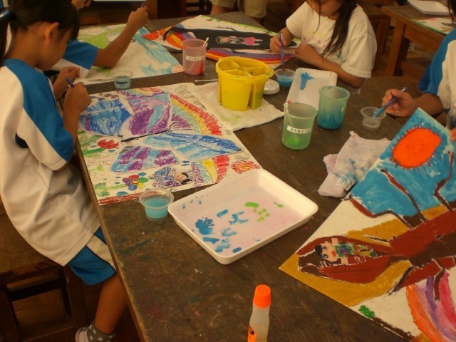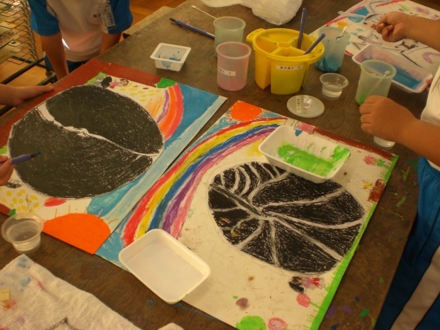 2年生の作品制作も進んでいます。生き物を中心に据え、構図を工夫しながら制作を進めています。どれも迫力満点です。