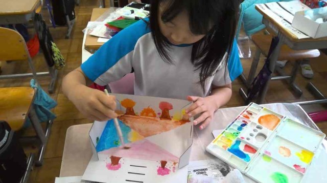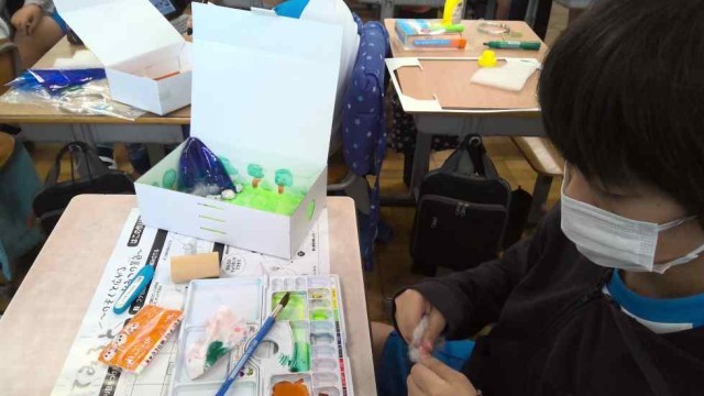 箱の中をどんなひみつの景色にするのか考え、工夫して表現しました。