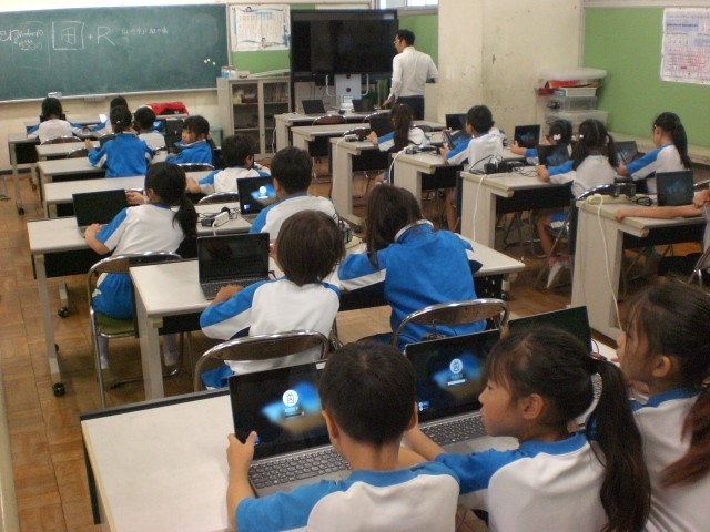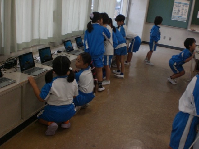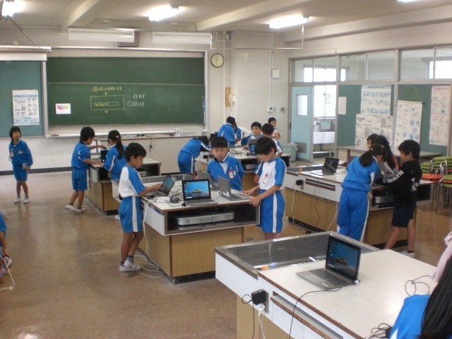 今日はタブレットの更新作業を一斉に行いました。ほとんど入ったことがない、コンピューター室や家庭科室にいきました。更新作業よりも、特別教室に入ることがとっても新鮮だったようです。