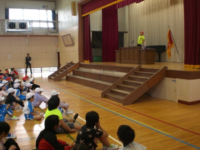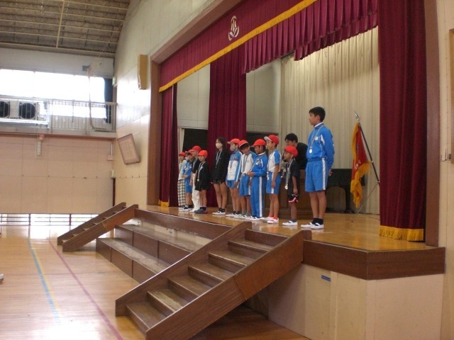 25日(土)の運動会では、閉会式を残して全競技を終えることができました。今日は体育館で閉会式です。リレーの表彰に続き、応援団の表彰、得点発表などが行われました。