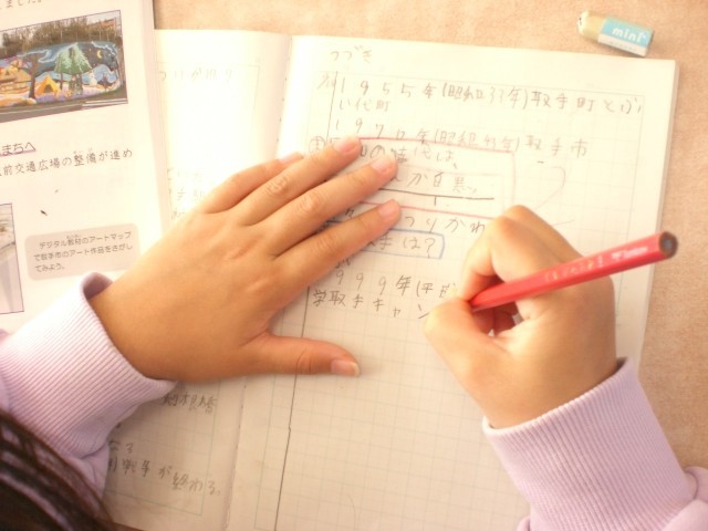 今日は取手市の歴史について学びます。先週訪問した東京藝術大学取手キャンパスのことも教科書に出てきて、みんなで盛り上がっていました。ノートにも上手にまとめていました。