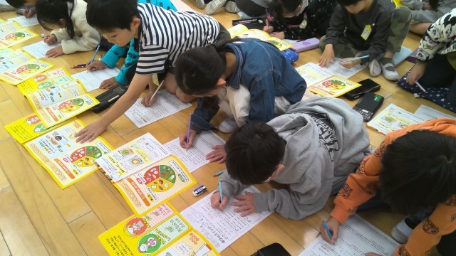 食育の授業です。朝ご飯を食べると、どんないいことがあるのかな?という課題について考えました。