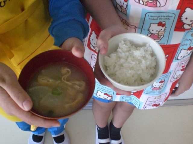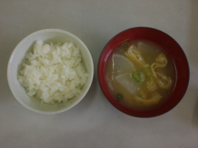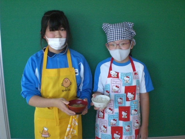 5年生の調理実習。今日はごはんとみそ汁を作りました。職員室におすそわけを届けてくれました。ごはんは鍋で炊いたそうですが、これがまた本当に上手に炊けていました。大根と長ネギと油揚げの味噌汁もとってもおいしかったです。ごちそうさまでした。