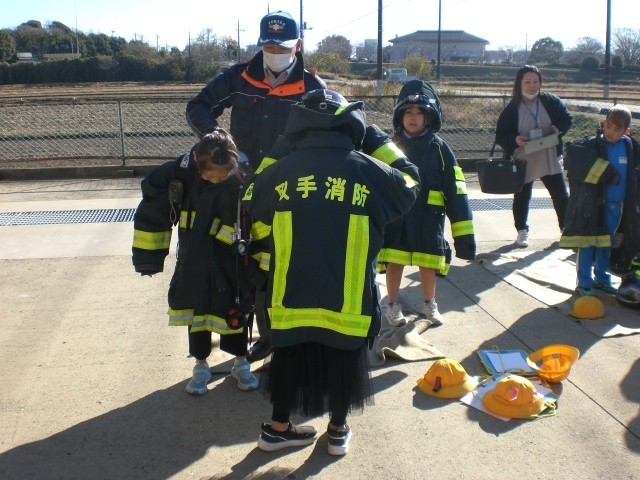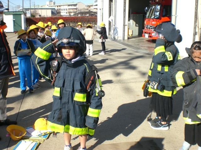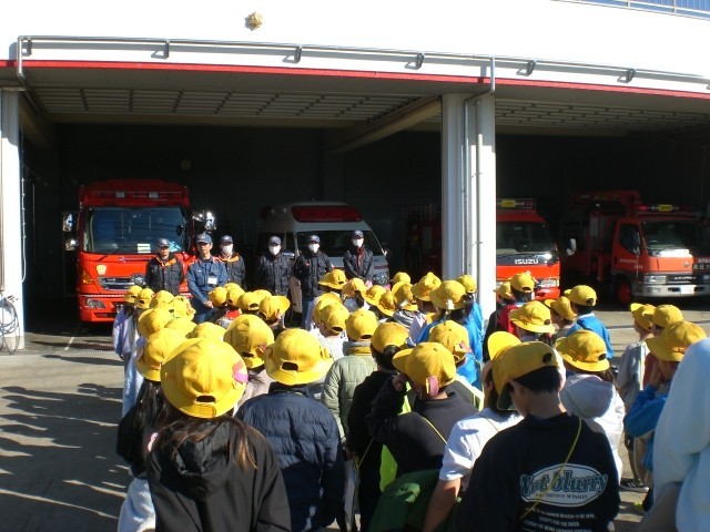 今日は、学校の近くの吉田消防署に見学に行ってきました。2班に分かれ、普段の消防署の仕事を教えていただいたり、いろいろな場所を案内していただいたり、20キロもある防火服と酸素ボンベを背負わせていただいたりと、たくさんの体験ができました。吉田消防署の皆さん、とても親切で分かりやすい説明、ありがとうございました。