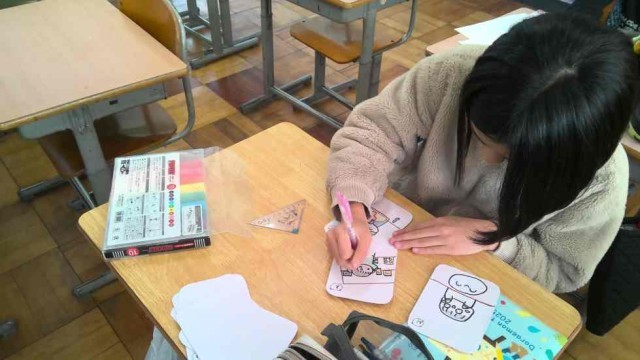 今日は、これまで調べたり実践したりしてきた食品ロス削減の取組を広げるために、ポスターやかるた、シールづくりをしました。