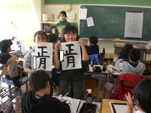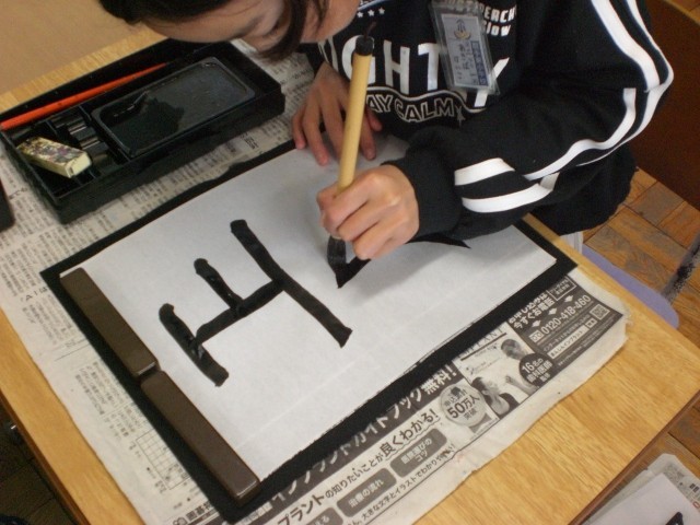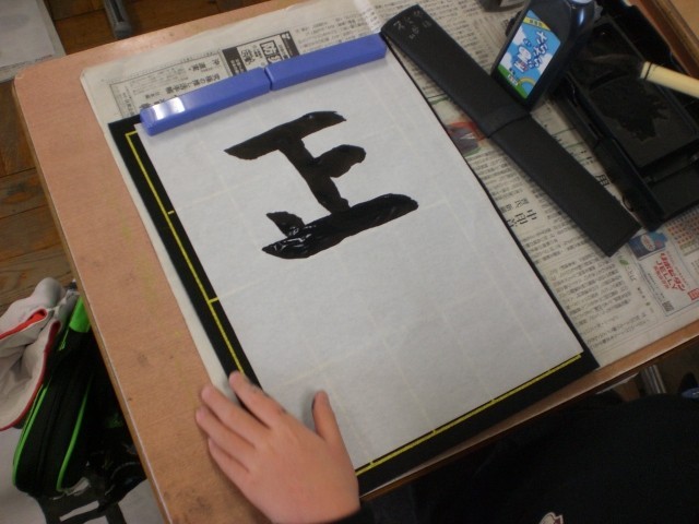 今回のお題は、「正月」です。筆を立て、姿勢を整え、気持ちを落ち着かせ、楽しい正月を思い出しながら書き上げていきます。