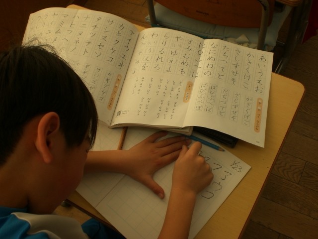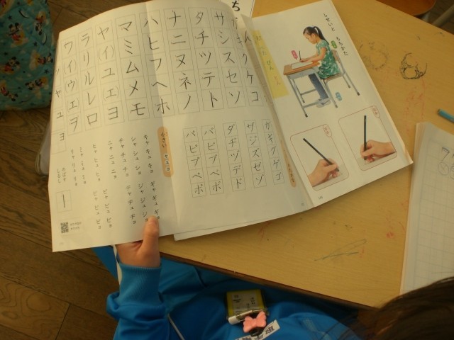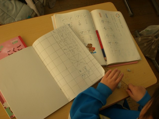 見つけた!アとマ、ワとク、ソとン、シとツ。カタカナの学習です。形が似ているカタカナに注意するために、まずは似ている形のカタカナを見つけ出します。その後、書き方書き順に注意して、練習します。
