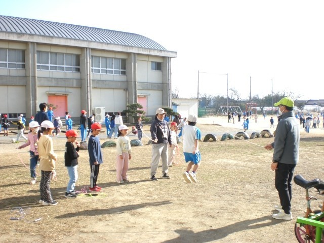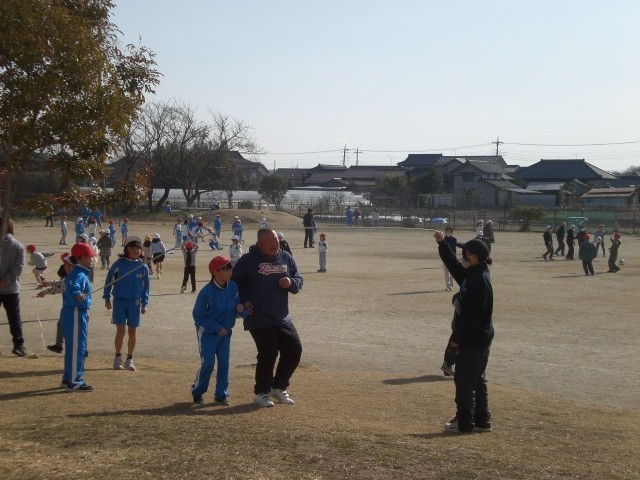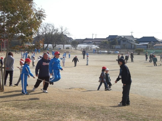 体育の授業では縄跳び。その影響か、休み時間は縄跳びがブームです。先生方も子供たちと一緒に大繩に挑戦中です。