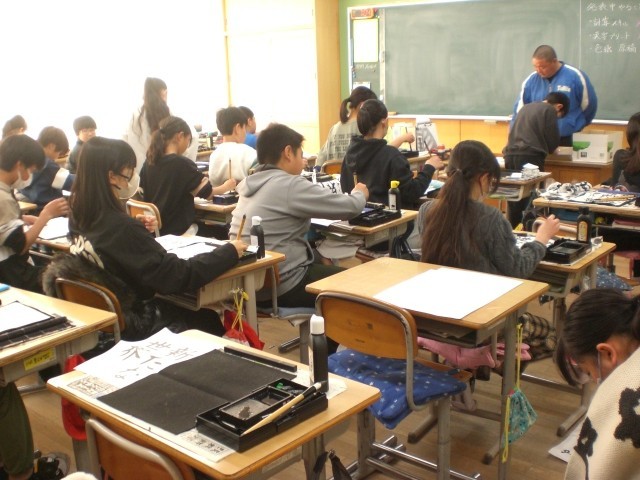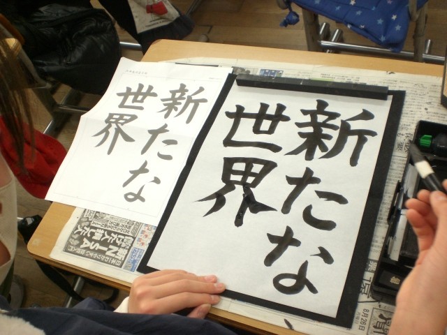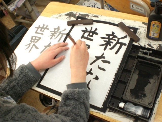 6年生の書写。静寂の中、集中しています。お題は、「新たな世界」卒業期を迎える子供たち。どんな思いで書いているのかな?