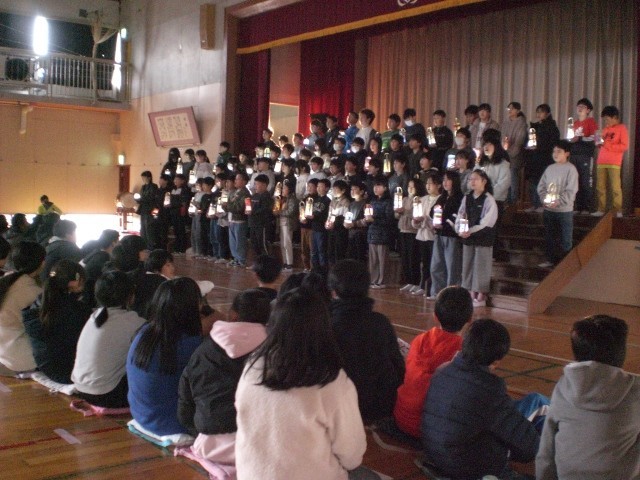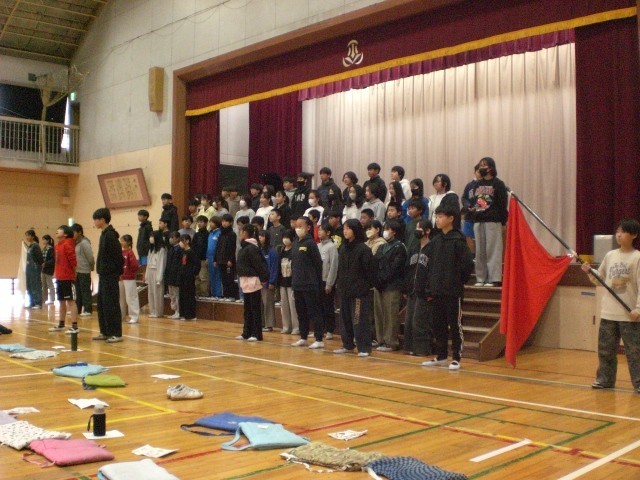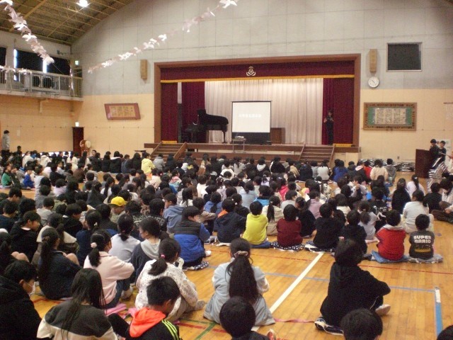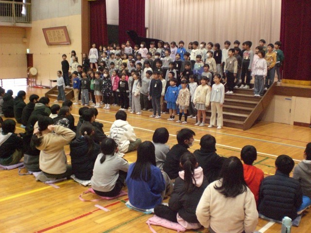 3月6日に体育館で6年生を送る会を行いました。1年生の歌、2年生3年生手作りのメッセージ、4年生の会場作成、5年生の司会進行と歌、思い出のスライドショーやレクリエーションも行いました。最後に全員で歌った校歌は、体育館が震えるほどの元気で大きな声でした。とっても心温まる会となりました。