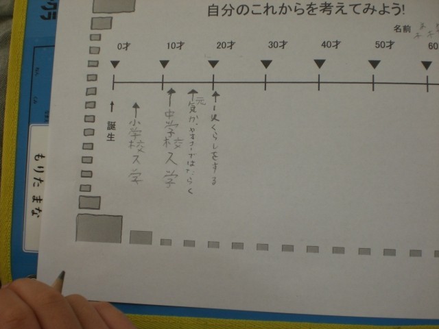 鈴木琴子先生の心の先生の授業がありました。3年生は自分のこれからのことを考える課題です。10年後、20年後、、、、50年後の自分はどうなっているのかを、設計してみます。中学校から先、どんな自分になりたいのか、そのためには今どうしたらいいのか考えを深めました。