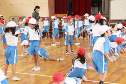 やる気いっぱいの1年生です。体育の授業の様子です。