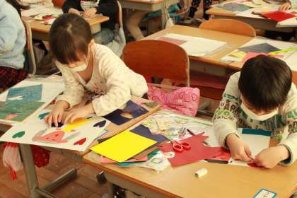 版画に挑戦しています!今は版づくりです。集中,集中!